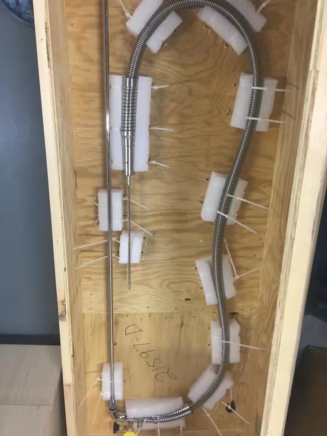 主要用來從大型液氦杜瓦瓶傳輸液氦至小型液氦杜瓦瓶,或者從用液氦杜瓦瓶為核磁做補液使用。根據客戶具體用途定制柔性管路和硬管具體長度。